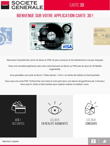 Téléchargez gratuitement l’appli Carte 3D de la Société Générale pour jouer en 3D Réalité Augmentée avec votre carte So Music et votre carte FFM.