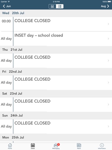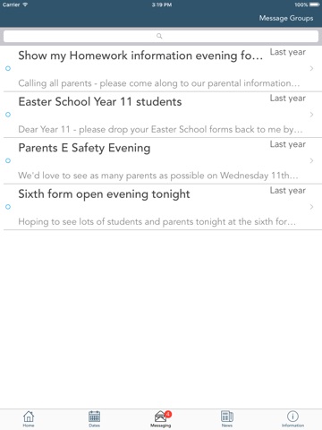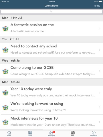 Shows all the latest stories from your school or organisation. If you tap on any news item you will be able to see more detail.