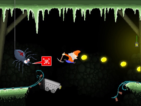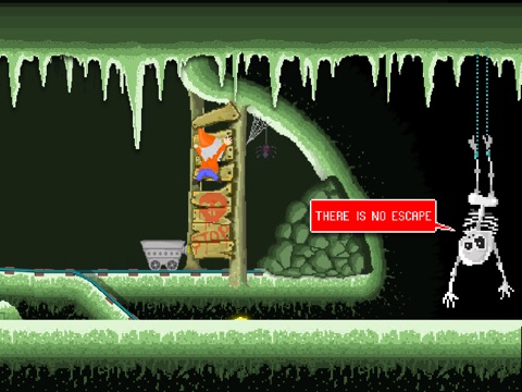 Jump, duck, hack and jump again to get away from the caving in cave.