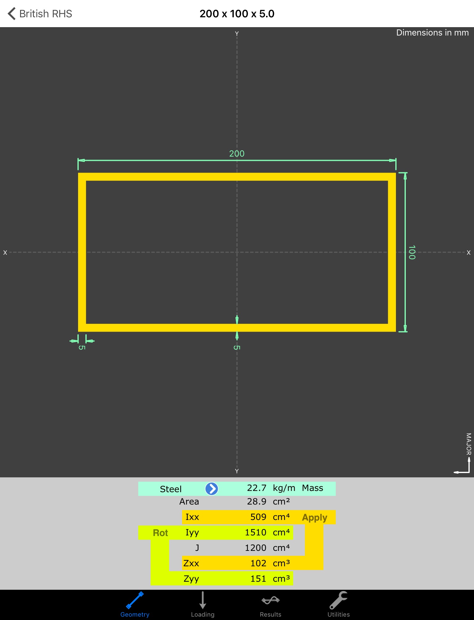 - Calculates: Area, Inertia, Torsional constant, Elastic moduli, mass.