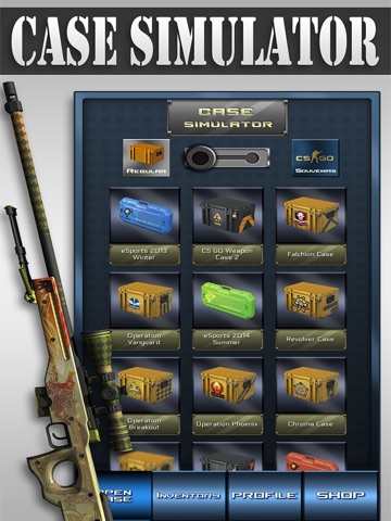 Open some of the best CSGO weapon and knife skins in this simulator app. This app has an inventory system where all weapons gained can be viewed. There is even a trade up contract system so you can trade up your skins just like in Counter Strike. Features a rank system based on cases open gives you free skins when you achieve a new rank.