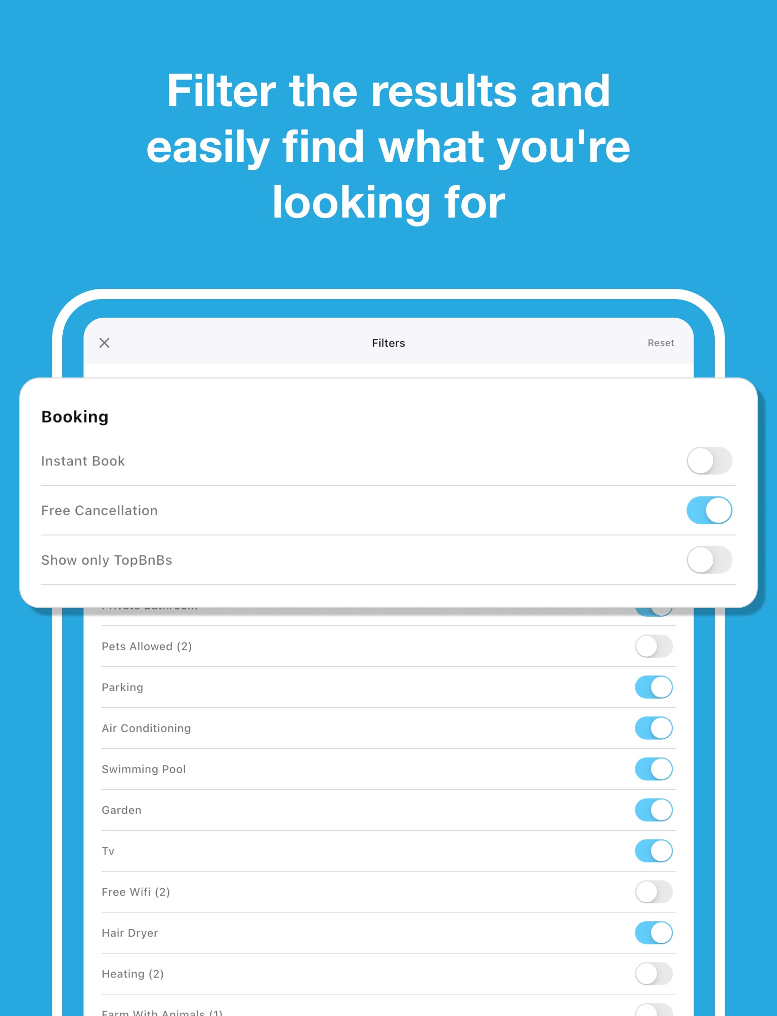 With our Case Vacanza Italia app it will be easy to search and find the best solution for your next trip. Choose among thousands of holiday homes and and apartments for rent in Italy. Use the efficient filter system to optimize search results and our internal messaging system to chat with the property manager before making a reservation. Youll find out everything about the chosen property in detailed entries containing all the information you need. Geolocalize to discover all the facilities in the vicinity, and much more!