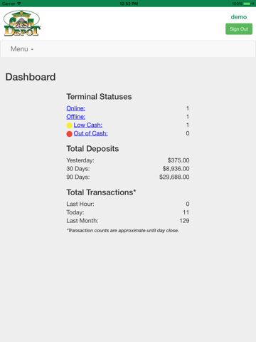 Cash Depots Automated Teller Machine (ATM) application will allow our customers the ability to have up to date information and the ability to manage their ATMs and Terminal accounts from the palm of their hands.