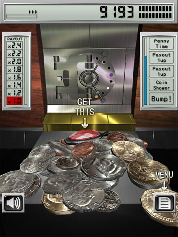 A coin pusher game, which is played with lifelike money.