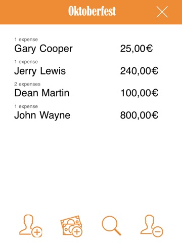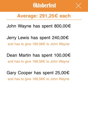 At any time youll be able to have the balance of the event, with the average amount of money for every participant and the list of the friends that will have to refund whom that spent more.
