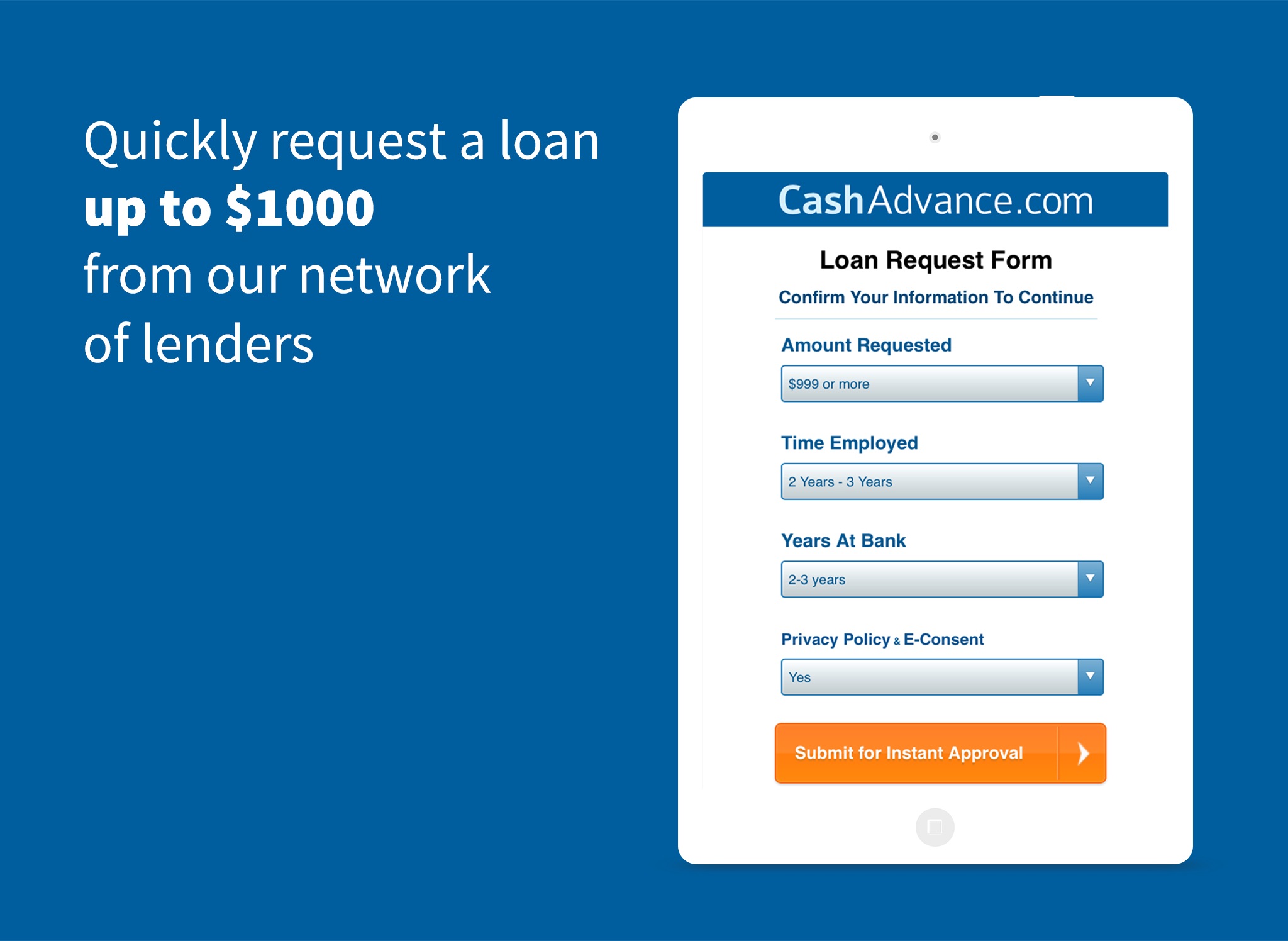 When facing sudden emergencies or unexpected expenses, you may need money, and quickly. You can use the CashAdvance™ app to find short term loan options and manage your loan history in your account center. Typically loan amounts provided by our lender network are from $100 to $1,000.