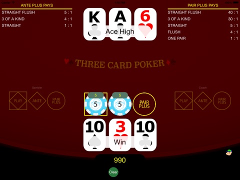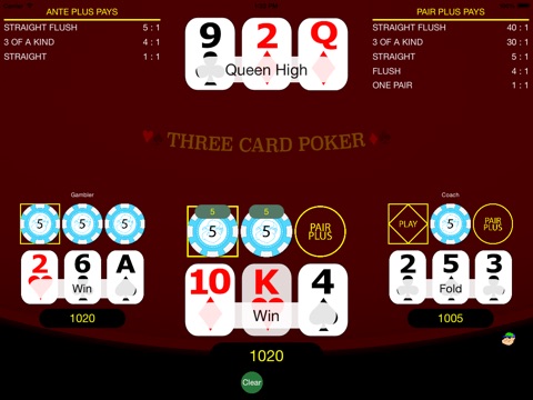 Casino Coach Three Card Poker lets you learn to play three card poker for FREE by watching brief instructional videos and playing three card poker against "The House."