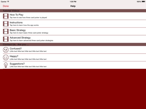 Unlock the advanced features of the app to watch additional videos, get tips on how to play your hand, and play against the "The House" with two new players - The Coach and The Gambler. Compare your results against theirs to fine tune your strategy and maximize your winnings!