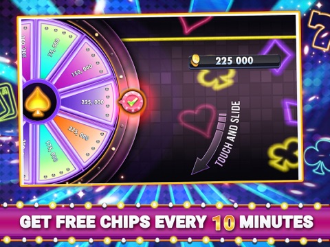 Absolutely. Vegas Night Slots gives you bonus chips every 10 minutes so that you can enjoy our pokies anytime! You can also get up to 100 free spins! Place your bet in our slot machines, spin and win big in this best free casino game on iOS now!