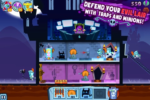Dr. Lord Evilstein has kidnapped a princess, and now his evil lair is crawling with do-gooders. In this reverse spin on tower defense it’s your job to defend your home turf from heroes trying to save the day. View your domain from a side-view perspective, placing traps and unleash minions on your unwitting foes to protect the fortress. Touch and drag up and down on the tower to navigate floors. Across three chapters, two bonus chapters, and 75 levels you’ll outwit intruders that attempt to invade your castle from all sides—ladders allowing them entrance on higher floors, underground drills to start on dungeon floors closer to your fair maiden. Keep the princess safely in your clutches and send those heroes cryin’ back to momma.