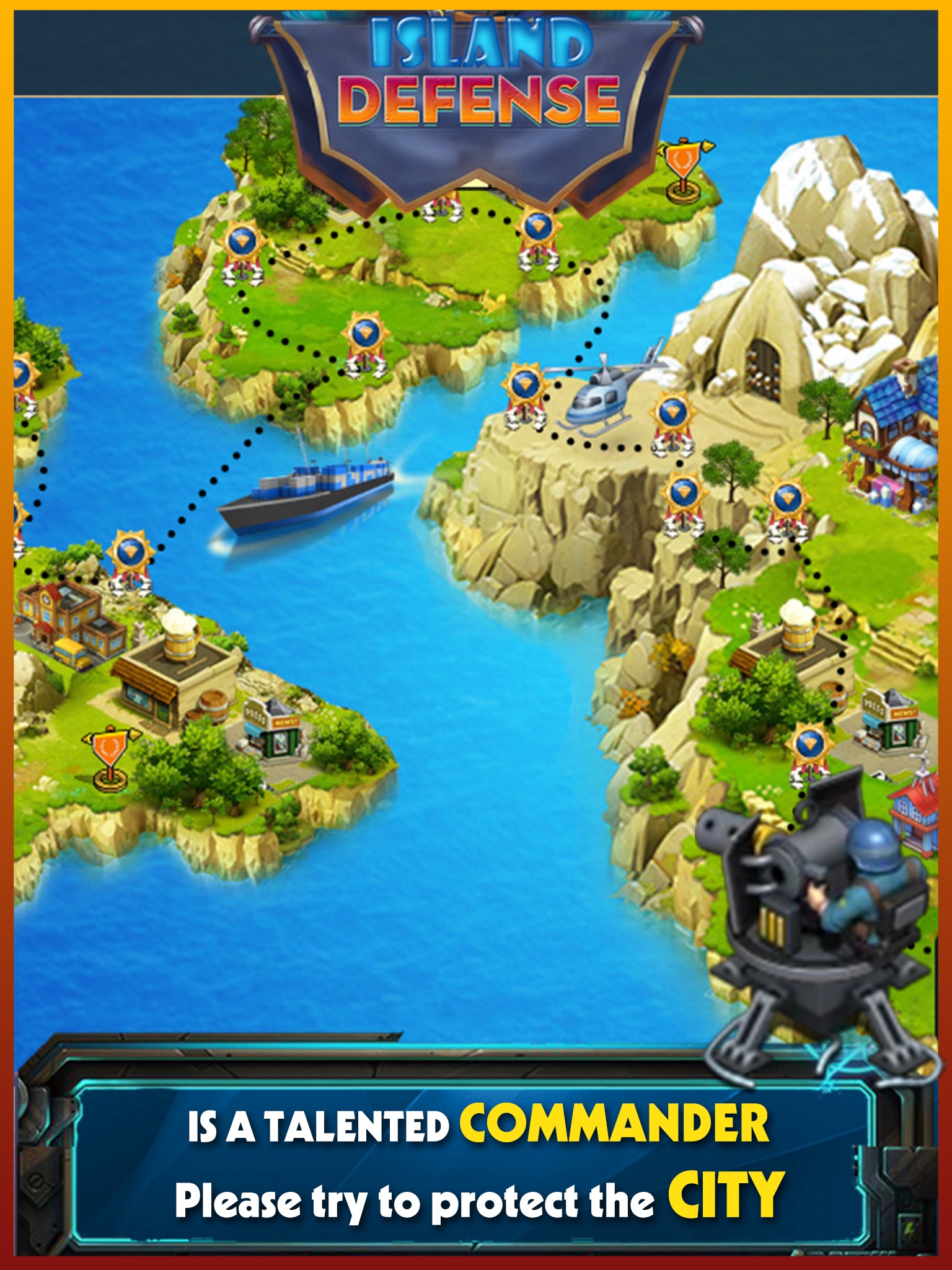 There are a lot of weapons that your enemies used to attack your island. You must lead your troops with weapons to fight back respectively and destroy them.