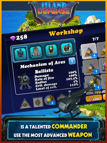 There are a lot of weapons that your enemies used to attack your island. You must lead your troops with weapons to fight back respectively and destroy them.