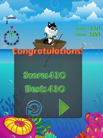 - Click on a fish to swim to stretch out hook to pull the fish into the boat.