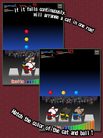 This game is the 9th iPhone game for the Web Game Site "DAN-BALL". Move the cat, match the color of the falling ball. This is the action game of fireworks.