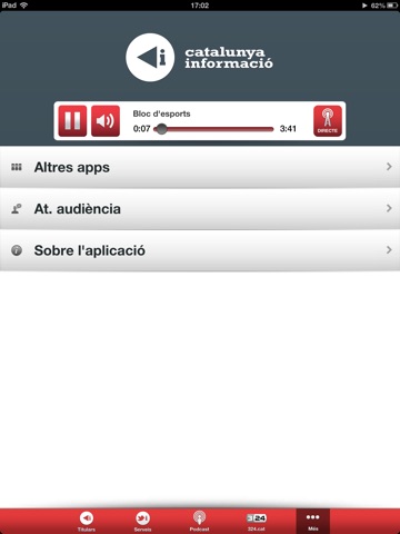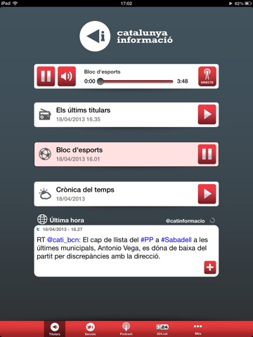 A més, podràs escoltar, en qualsevol moment, els darrers titulars, el bloc desports o la informació meteorològica.