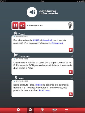 També podràs llegir els titulars en format tuiter publicats des de la redacció, així com la informació del trànsit, la informació de comarques i la de la borsa.