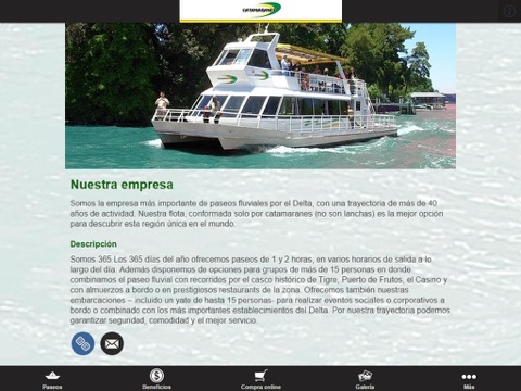 Desde nuestra aplicación podrás acceder a beneficios exclusivos, galerías de fotos, videos, y todo lo que necesitas saber para programar un viaje inolvidable por el Delta.