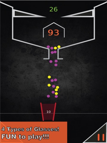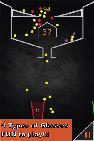 Get the balls through the glass by tapping on the screen. Each Glass has a different color and each has its own score multiplier.The balls get the color of the glass. Your score gets higher and so is the difficulty of the game by increasing the speed of the glasses.