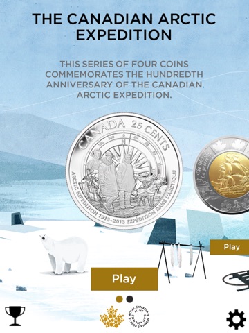 The Royal Canadian Mint is proud to offer you a new version of its game, CATCH-A-COIN. Collect the coins commemorating the hundredth anniversary of the Canadian Arctic Expedition and the War of 1812 as they move around the screen while pushing away the others. It’s a fun way of discovering those historical collections!