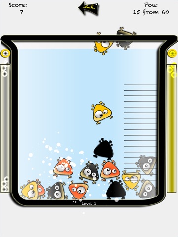 The goal of the game is to keep the beaker as empty as possible. The only problem is that to remove Pou there has to be two or more similiar around - if not they change to black and are resistant to your fingers attacks!