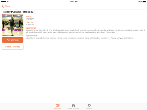 When you subscribe to Cathe’s Live service, you can view her live videos not only in this app, but also on your computer or stream from your iOS device to your television through AirPlay and Apple TV. Via your computer’s web browser, you can also view Cathes live broadcasts and recorded workouts.