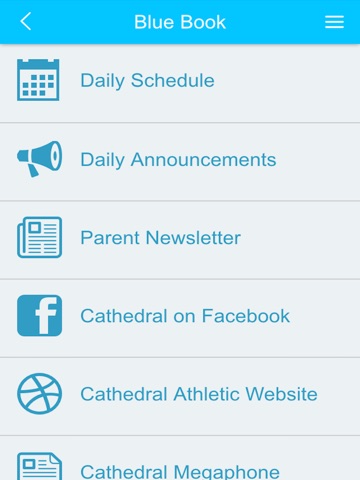 The Cathedral High School "Blue Book" is a must-have reference for students and parents containing current family, faculty, and staff contact information, school calendars, daily schedule, and student handbook information.