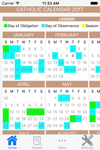 A comprehensive calendar app to view dates of significance in the Catholic Christian community such as Holy Days of Obligation, Feast Days, Days of Observance and Seasons in the Liturgical year.