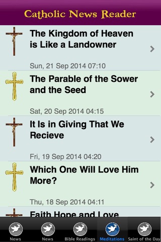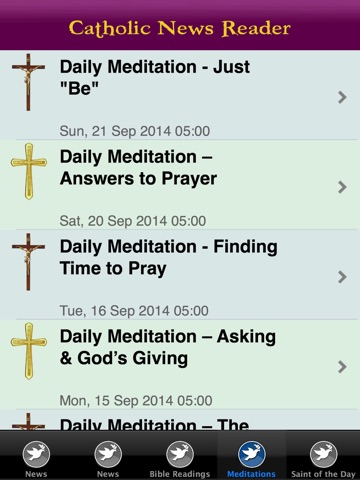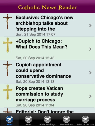 Catholic News Reader brings you the latest Catholic news daily. In addition to news, there is also a daily Bible Readings section, daily Meditations section, as well as a Saint of the Day section.