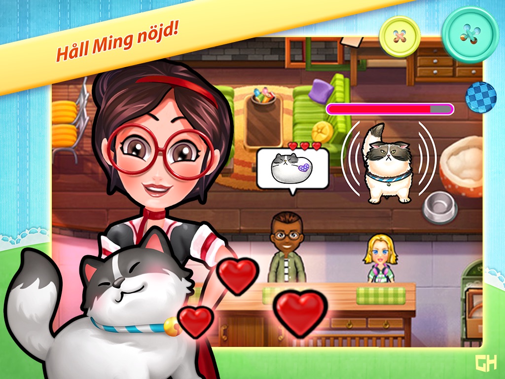 Manage your own crafting shop while enjoying the story of Cathy and her slightly eccentric cat, Ming! Craft loving customers will enter your store to create beautiful objects, but theyll need your help to make the most creative decorations. While assisting them, be sure to feed Ming from time to time; hes extremely cute & cuddly, but he gets really grumpy when hes hungry! Youll play in 6 different locations and you can customize your shops to give them the look you want. If you win all trophies youll be able to call yourself a real Craft Shop Star! Have fun!