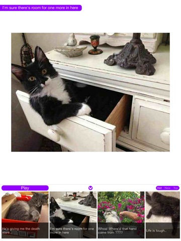 Cats! - Pics & More displays amazing images, videos, & gifs of cats and presents them in a clean, easy, and fun way. All of the funny and wonderful content in this app is provided by the wonderful reddit community at reddit.com.