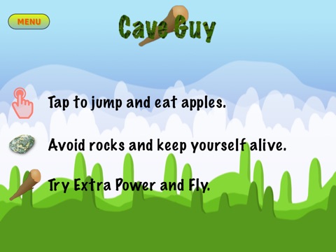 Cave Guy is a funny game with a hero that only thinks about eating big red apples.