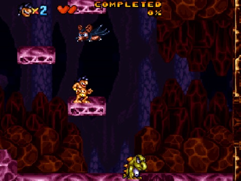 Armed with club and jumping skill, the hero walks and jumps his way through the levels and whacks enemies in the head.
