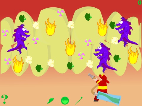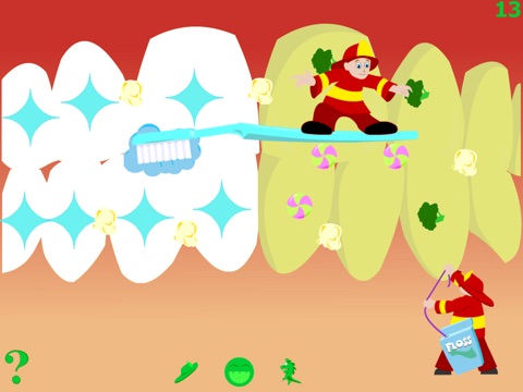 • Use your buddy the fireman with his toothpaste hose to squirt food, fires, and cavity dragons off teeth