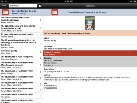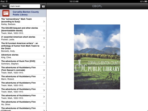 The Corvallis-Benton County Public Library, serving the City of Corvallis and all Benton County Communities.Search our catalog for books, movies, music and more. Manage your account, place holds and renew books, check due dates, and view your account balance. Ask a librarian a question via email, IM, text or telephone. Check our calendar of events for classes, author readings, and story times. Find your nearest branch location and view hours, addresses, and get directions. Connect and follow our library blogs, Facebook and Twitter. The web enabled search is designed for mobile devices – just type in the first few words and the results will display. To search for “Stephen King”, for example, all you need to type is “ste ki”.