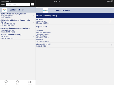 The Corvallis-Benton County Public Library, serving the City of Corvallis and all Benton County Communities.Search our catalog for books, movies, music and more. Manage your account, place holds and renew books, check due dates, and view your account balance. Ask a librarian a question via email, IM, text or telephone. Check our calendar of events for classes, author readings, and story times. Find your nearest branch location and view hours, addresses, and get directions. Connect and follow our library blogs, Facebook and Twitter. The web enabled search is designed for mobile devices – just type in the first few words and the results will display. To search for “Stephen King”, for example, all you need to type is “ste ki”.