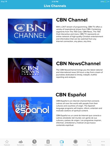 - 3 live video channels including CBN News, CBN Live, and CBN Español – no sign in or cable provider needed