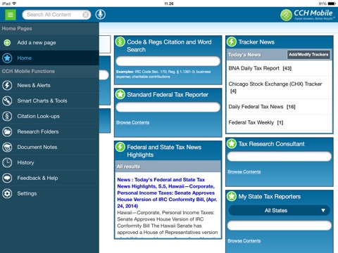 CCH Mobile ensures you stay ahead of the competition by providing the latest Federal and State tax news headlines and unprecedented access to the industry’s best content. Whether you are at a client’s office, commuting on public transportation or at your child’s soccer game, CCH Mobile delivers immediate access to the information you need to stay up-to-date on the ever-changing world of tax laws and regulation.