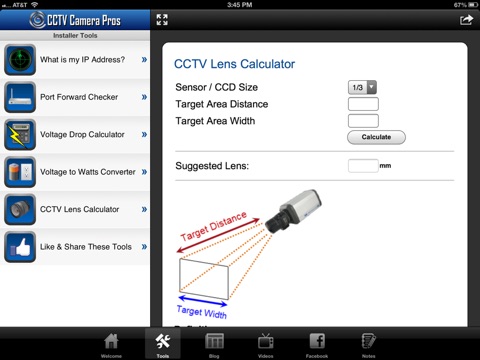 ► CCTV lens calculator - calculate the proper lens for your application using the distance from the camera to the target area and the width of the target area.
