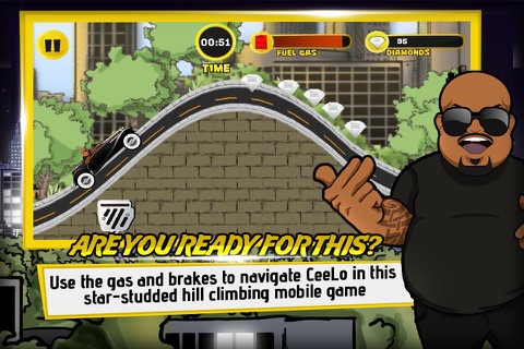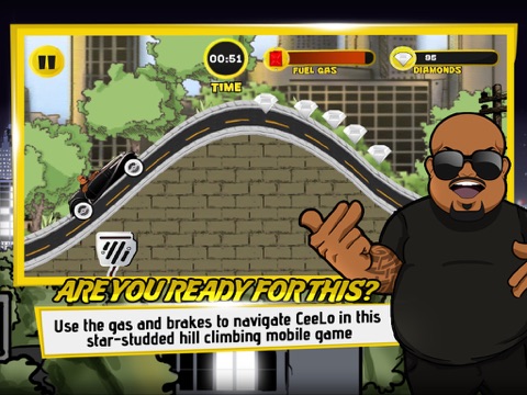 • Use the gas and brakes to navigate CeeLo in this star-studded hill climbing mobile game