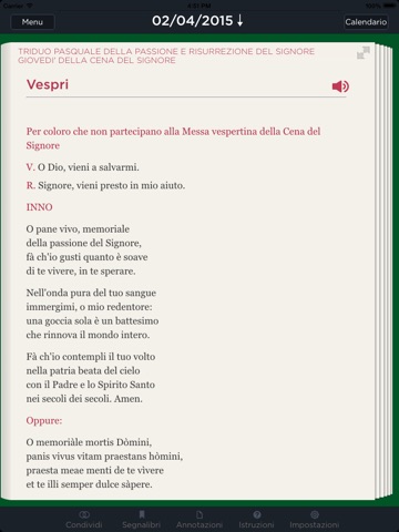 E’ la prima APP a proporre, oltre alla fruizione del testo ufficiale della Liturgia delle Ore della Conferenza Episcopale Italiana, anche la versione audio delle diverse Ore dell’Ufficio nell’arco della giornata. Il supporto audio potrà essere utile in modo particolare alle persone ipovedenti.