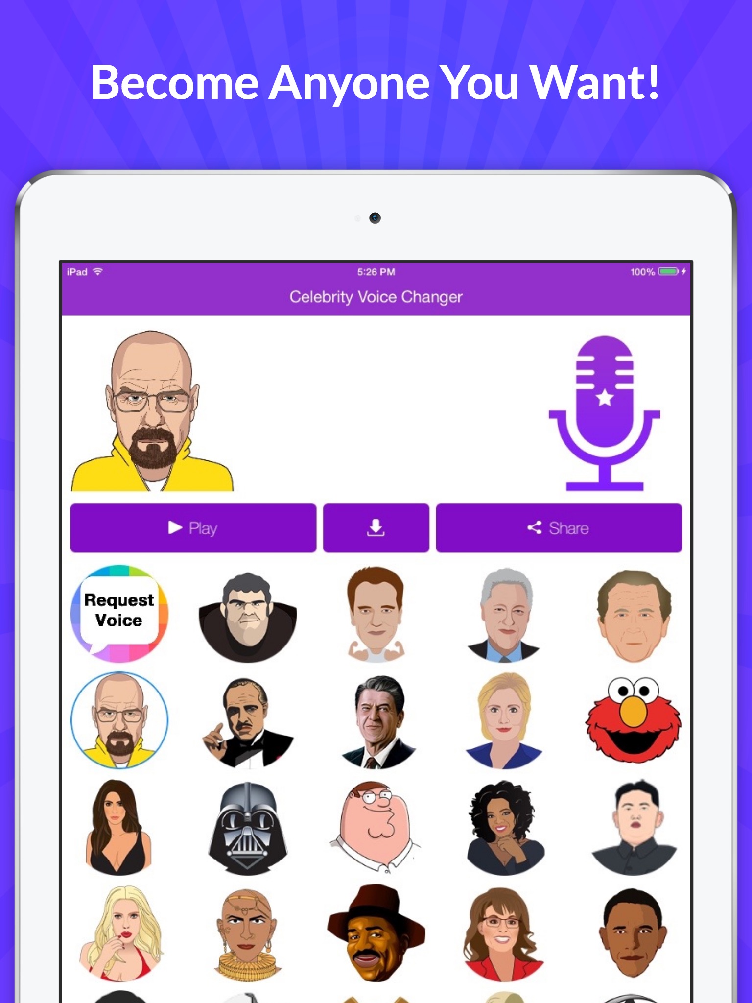 First Ever Celebrity and Cartoon Voice Changer lets you change your voice to any of our cartoon or celebrity voice instantly, just by talking into a mic. This is not a cheap voice effect, like every other voice changer on the market.
