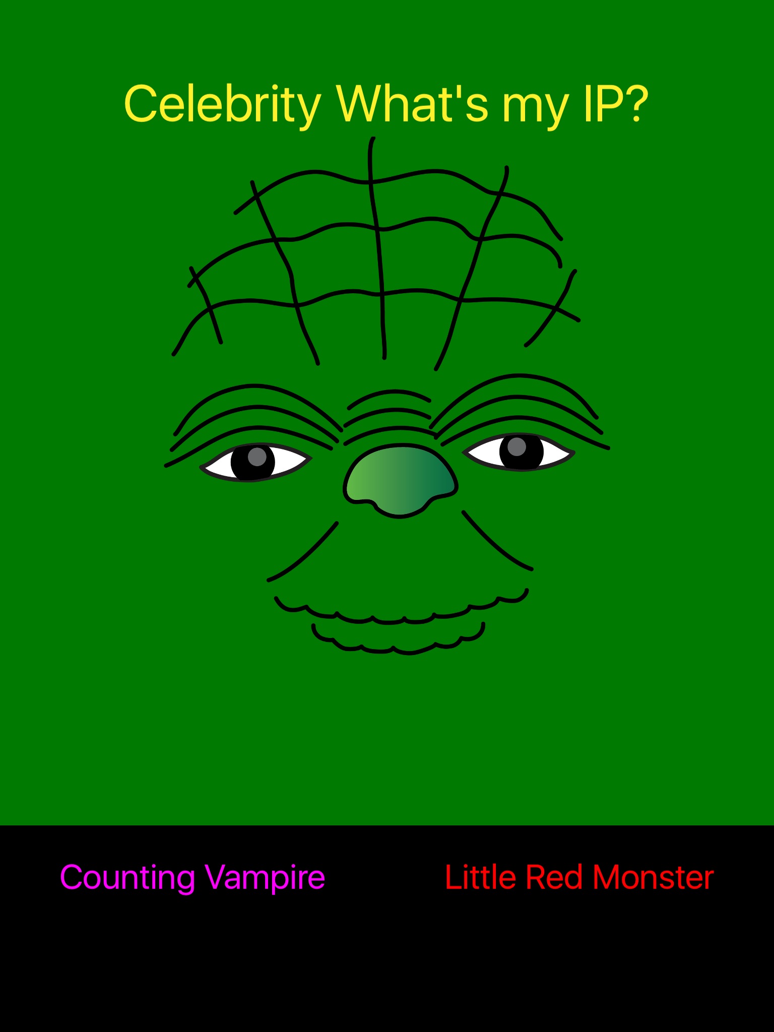 Need to give your IP address to customer support rep? Want to know your IP address, but want someone entertaining to read it to you? Hear your IP address from a familiar little green alien, a little red monster, and a purple vampire that LOVES to count!