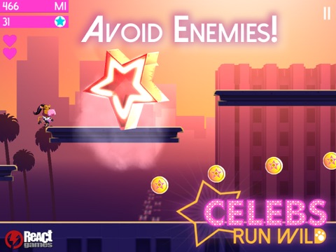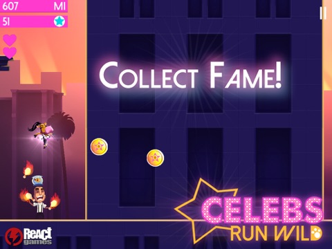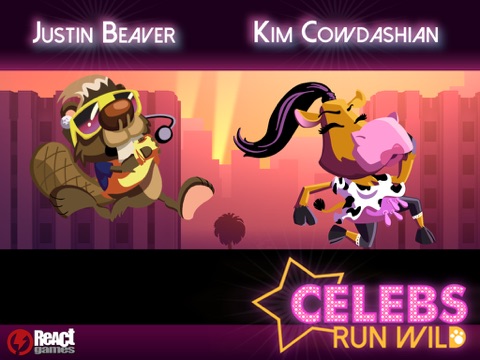 Get ready to run with Justin Beaver and Kim Cowdashian, your favorite Hollywood party animals! Avoid crazed hobos, ravenous dogs, and the ever menacing wrecking ball! Use your shield upgrade to give you some protection, and the magnet boost to gather all that fame! From the makers of the classic Presidents Run, React! Games brings you Celebs Run Wild! Do you have the chops to run with the best?