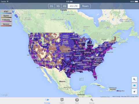 - Determine which operator is best for you by visualizing 2G, 3G, 4G, 4G LTE and Roaming coverage information for the largest operators in the United States.