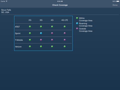 Keep in mind that the intel used in this application is based on marketed network coverage information and does not guarantee service availability. This application does not include global roaming coverage outside of the United States. Actual service availability may vary due to weather, terrain, foliage, buildings, equipment, and other factors.