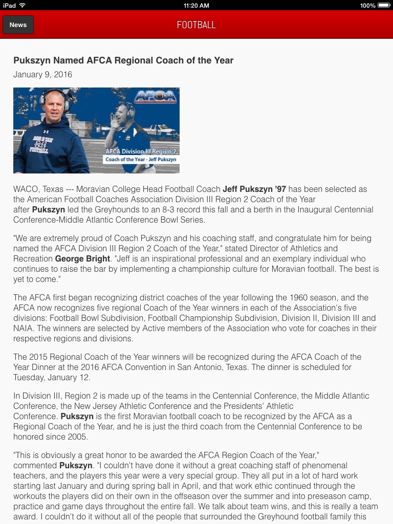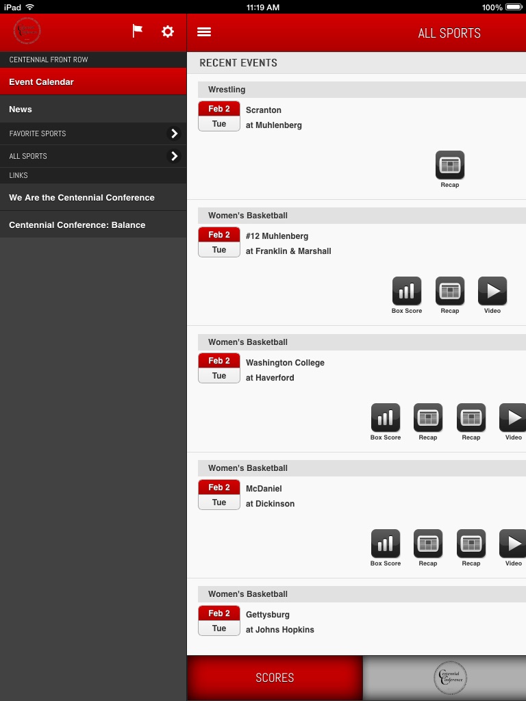Created by PrestoSports in partnership with the Centennial Conference, Front Row gives fans access to score updates, statistics and game recaps.