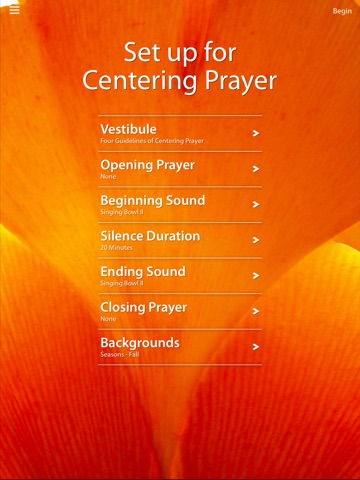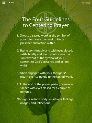 The Centering Prayer application will support your daily prayer practice commitment. Beautiful and peaceful, the app includes an adjustable timer, as well as opening and closing prayer options that you may read before and after your silent prayer time. An assortment of sounds and backgrounds allow you to choose the type of environment you want to create for your prayer time. Brief instructions for learning Centering Prayer are also included.