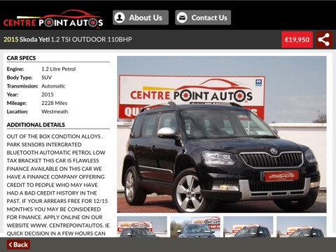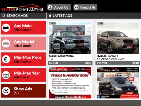 Dear Valued Customer, Welcome to the Centre Point Autos stock APP. The most up to date way for you to keep an eye on your new car in the Midlands of Ireland!