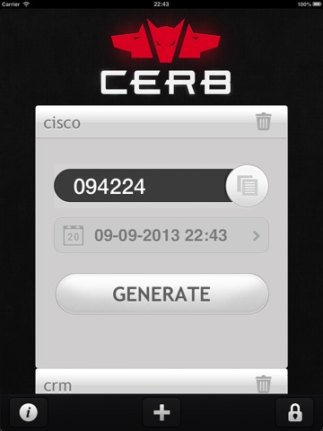 CERBToken is an application responsible for generating one-time passwords (time-based or event-based) for use with CERB authentication system.