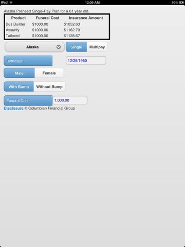 Preneed Quote Calculator for Columbian Financial Groups Agents and Funeral Home Directors.